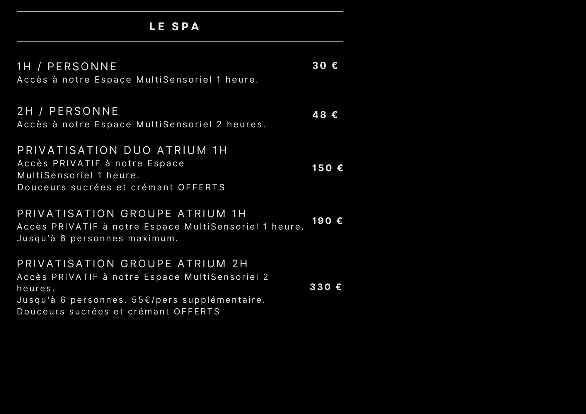 Les personnes ayant des problèmes cardiaques, d’hypotension, d’hypertension doivent prendre un avis médical. Les mineurs de plus de 14 ans peuvent accéder à l’Espace Atrium, accompagnés d’une personne majeure.